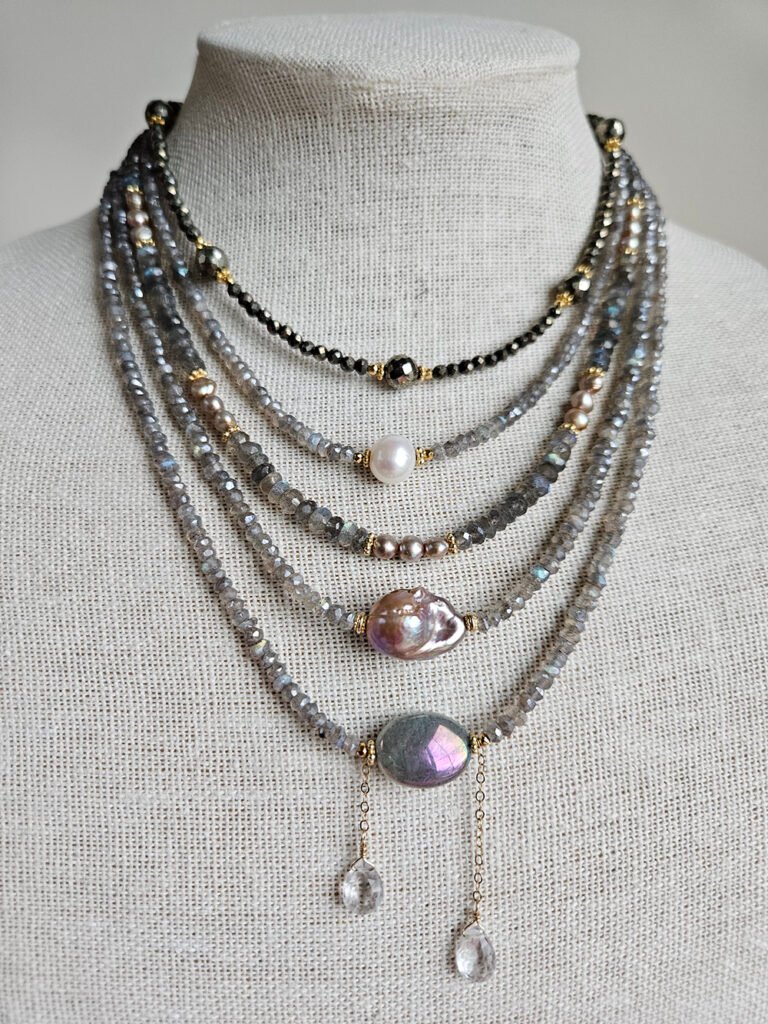 Guests design two bespoke jewelry pieces — either 2 bracelets or a bracelet and necklace 16-18″ long — using an exclusive selection of 14k gold-filled and sterling silver clasps with extener, complemented by handcrafted freshwater pearl charms. Each element is carefully curated for beauty, durability, and lasting quality, ensuring that every creation is meant to be worn and treasured for years to come.