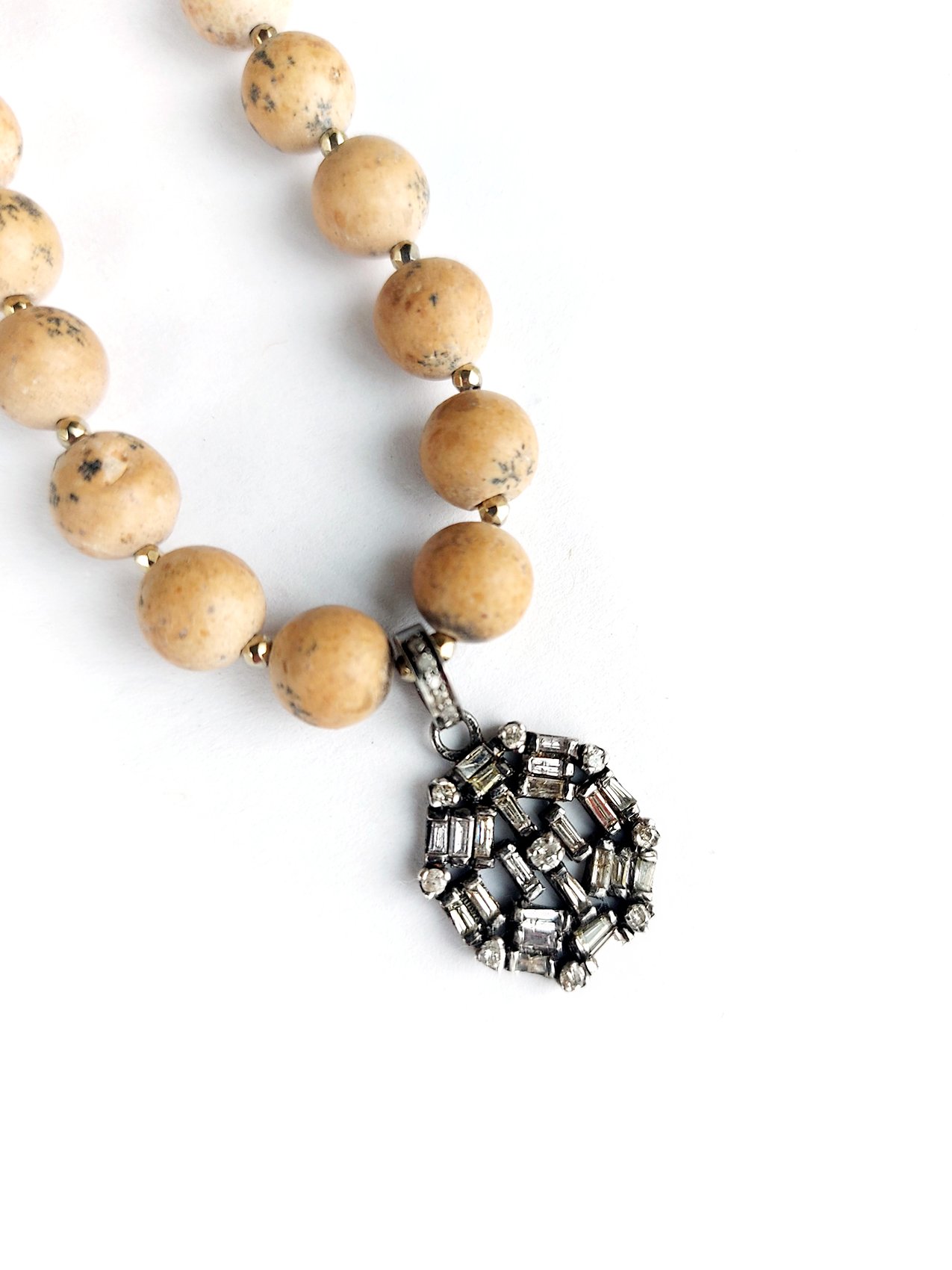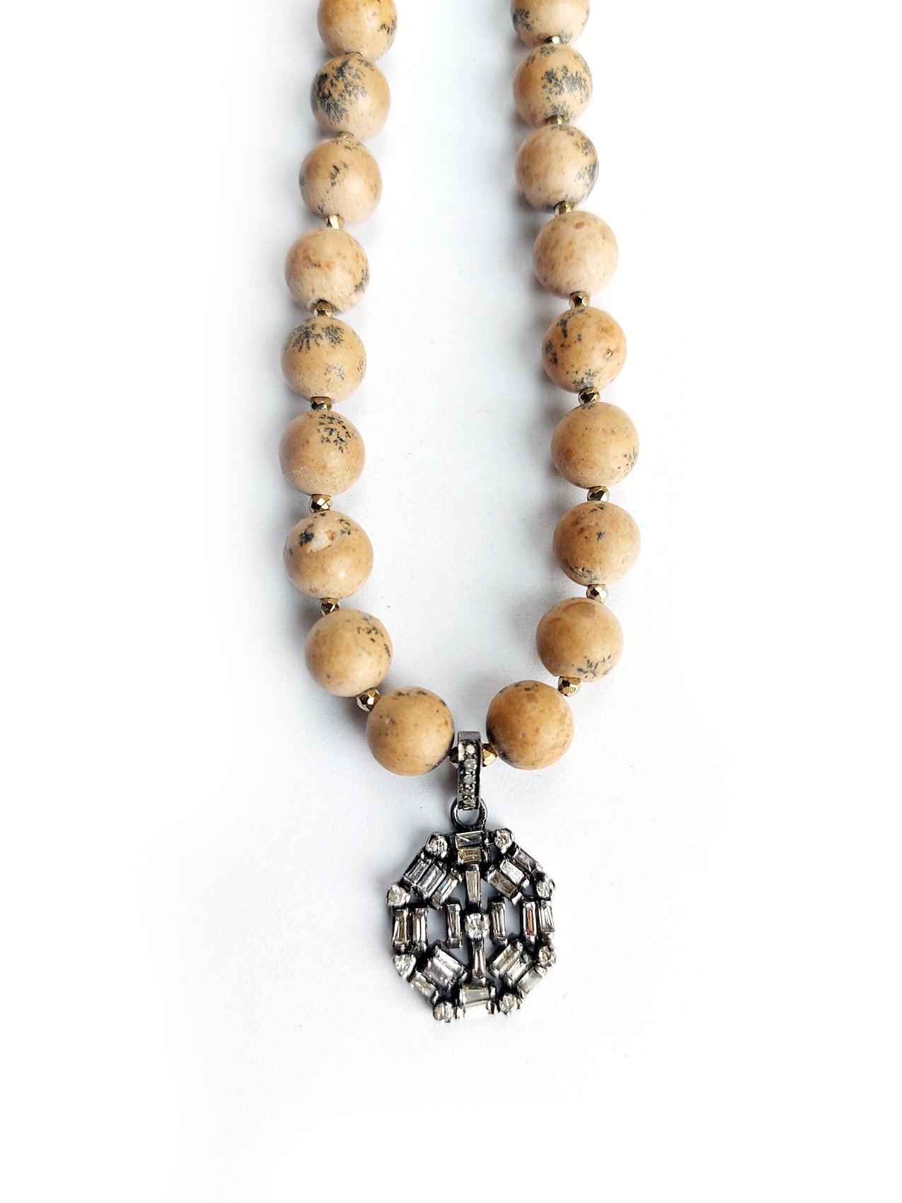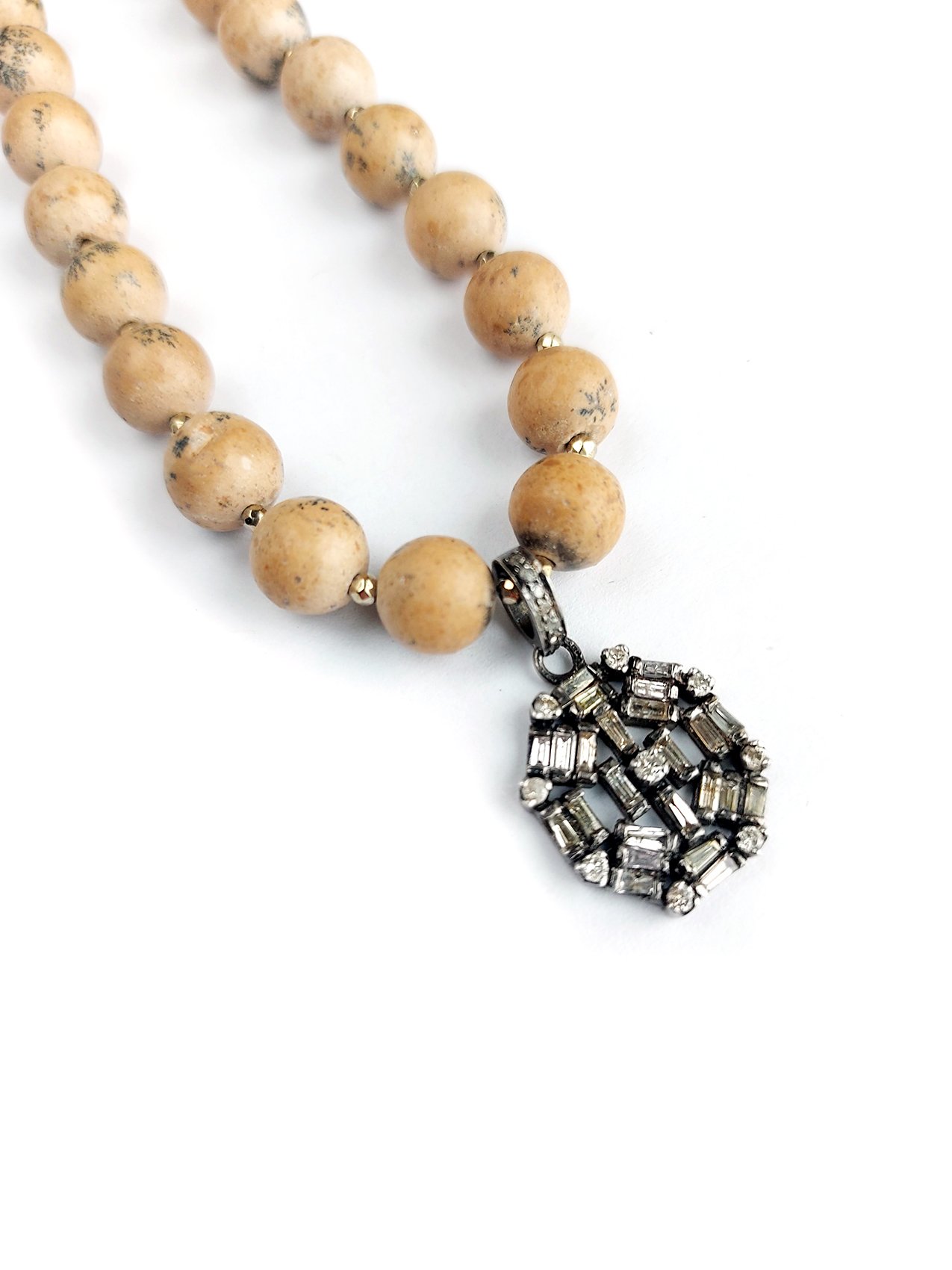 Baguette Diamond Pendant, Jasper beads necklace – N 2575