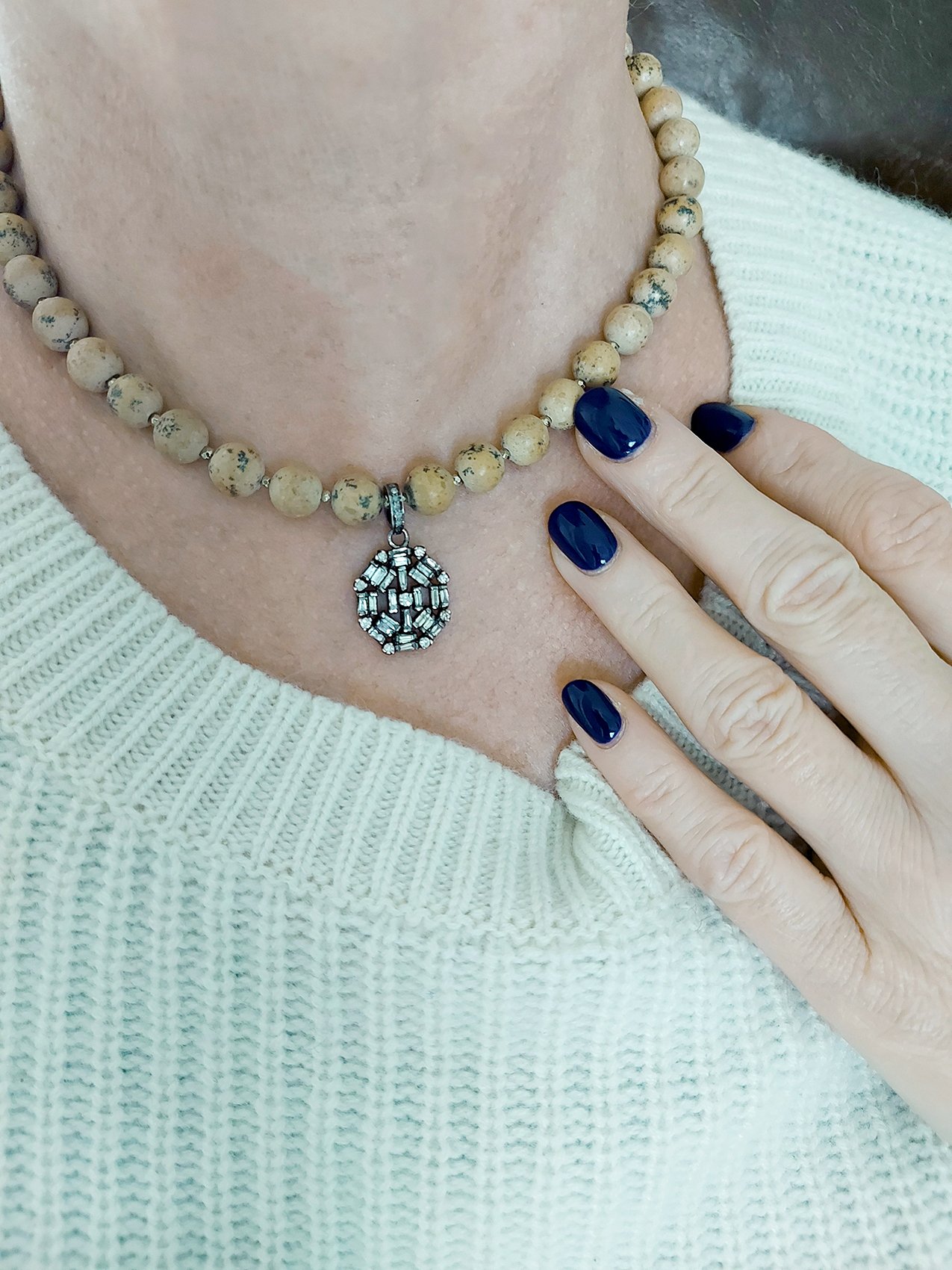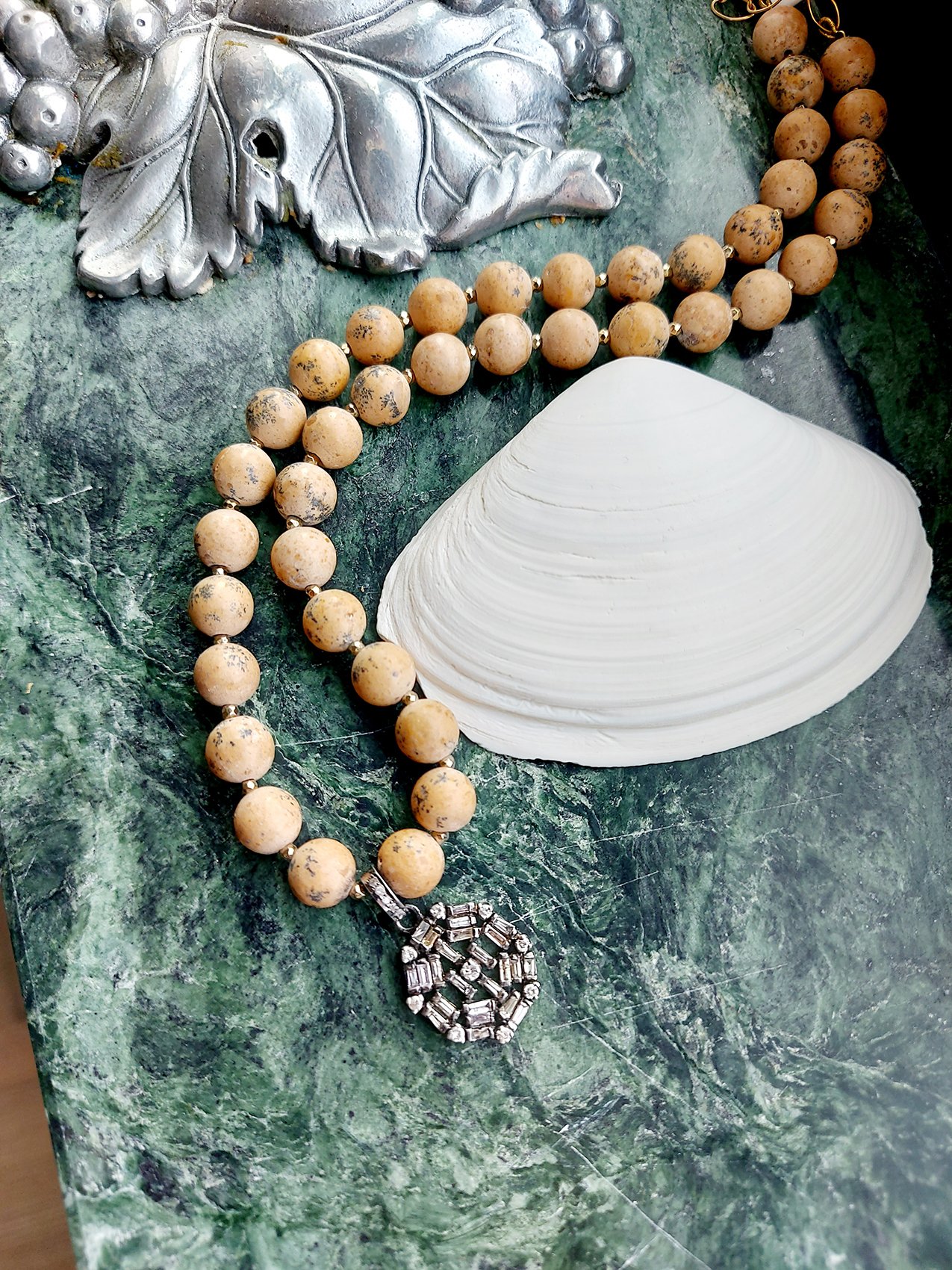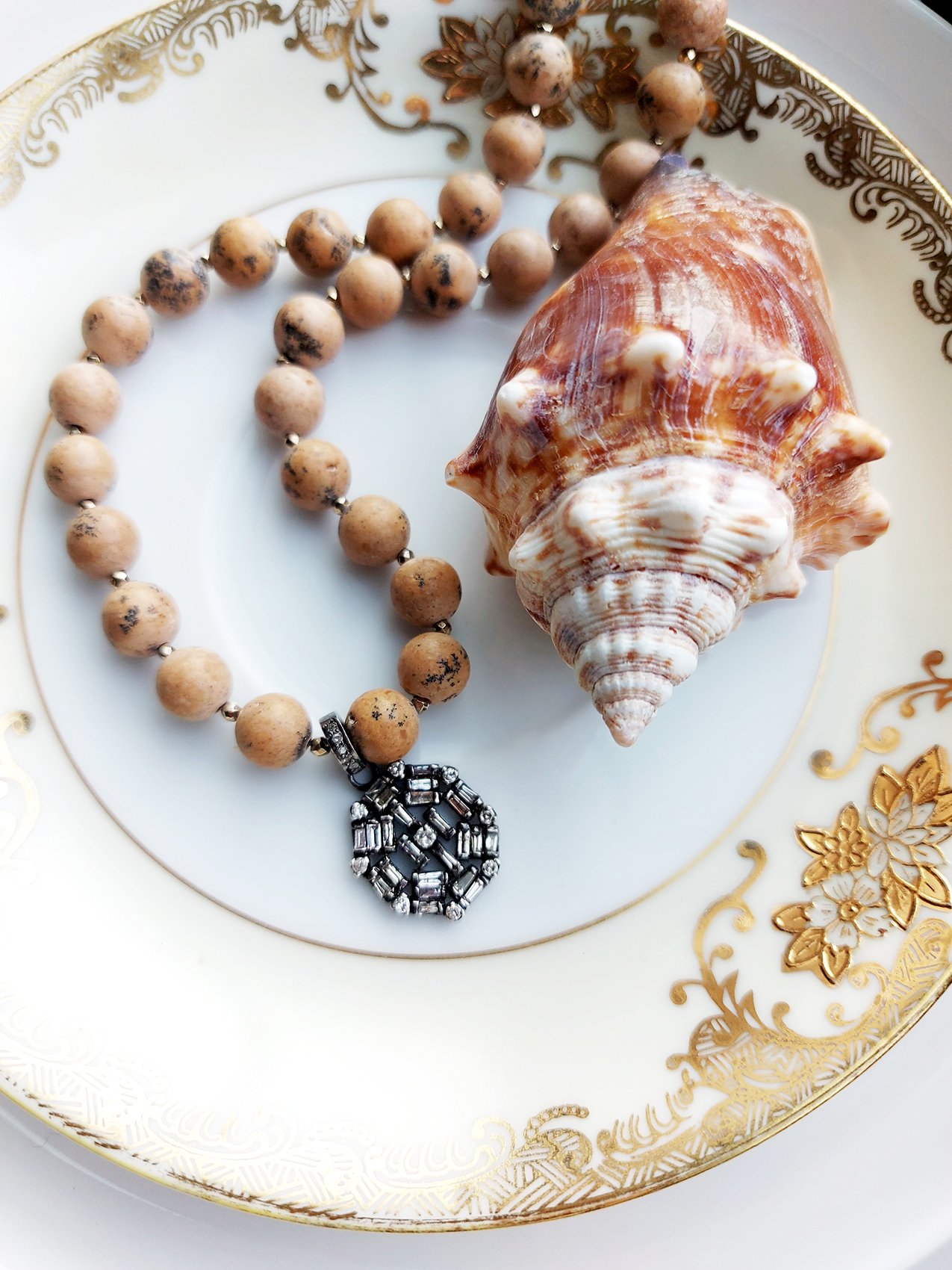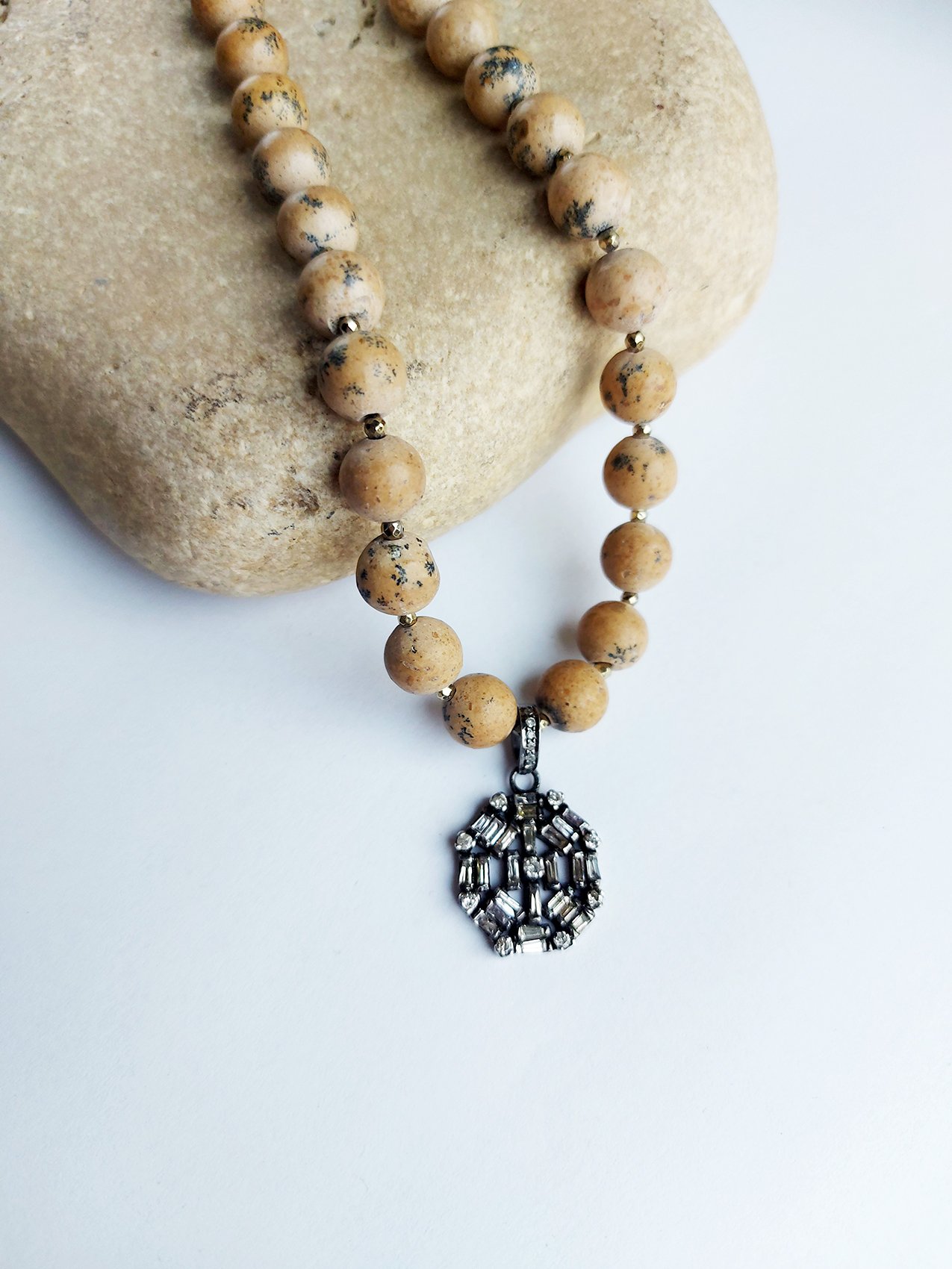 Baguette Diamond Pendant, Jasper beads necklace – N 2575