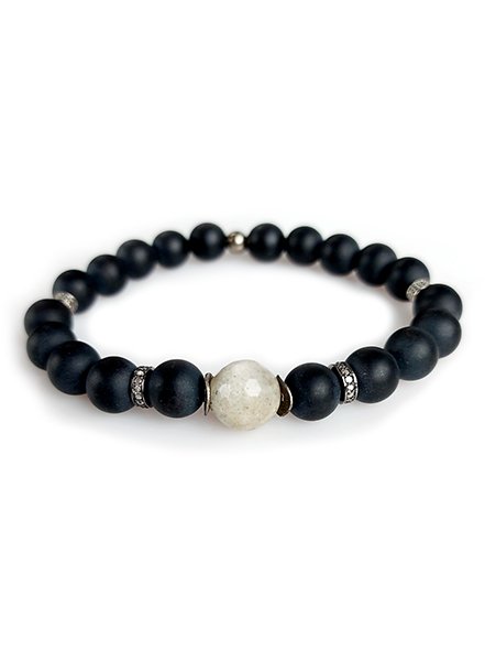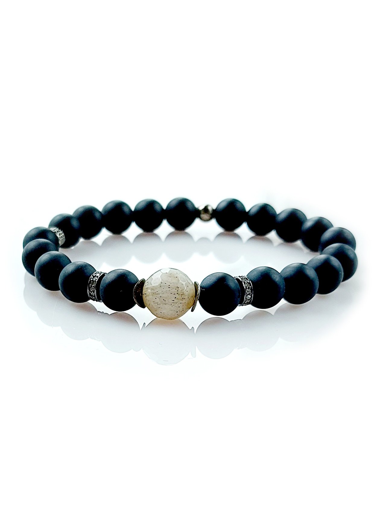 Black Onyx Bracelet with Labradorite and Diamonds – BR 1121