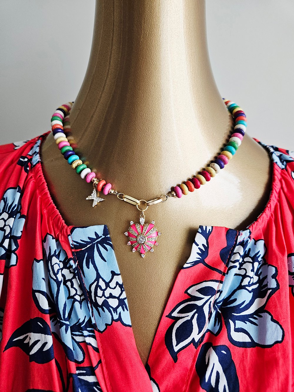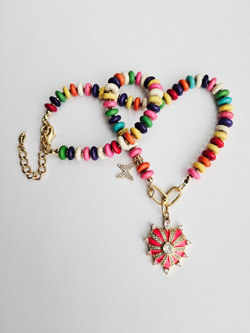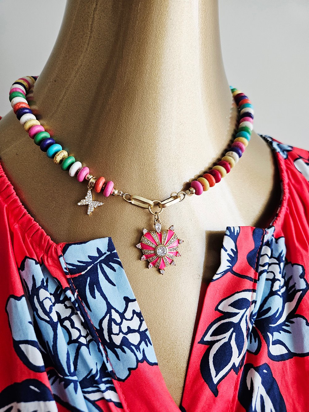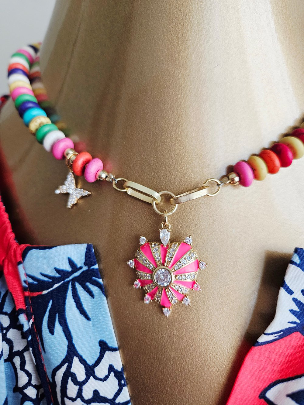 A joyful expression of color, light, and feminine energy, this handcrafted necklace is designed to uplift the spirit and illuminate every look.