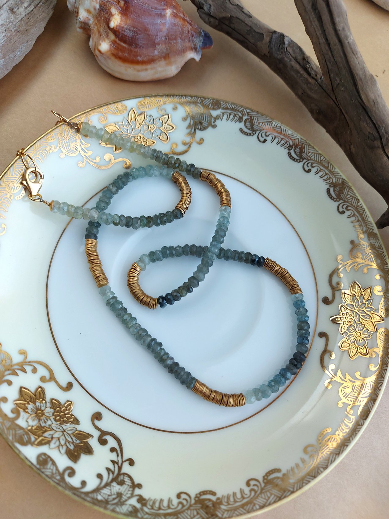 Elevate your style with the captivating Moss Aqua necklace – a stunning blend of natural elegance and modern sophistication.