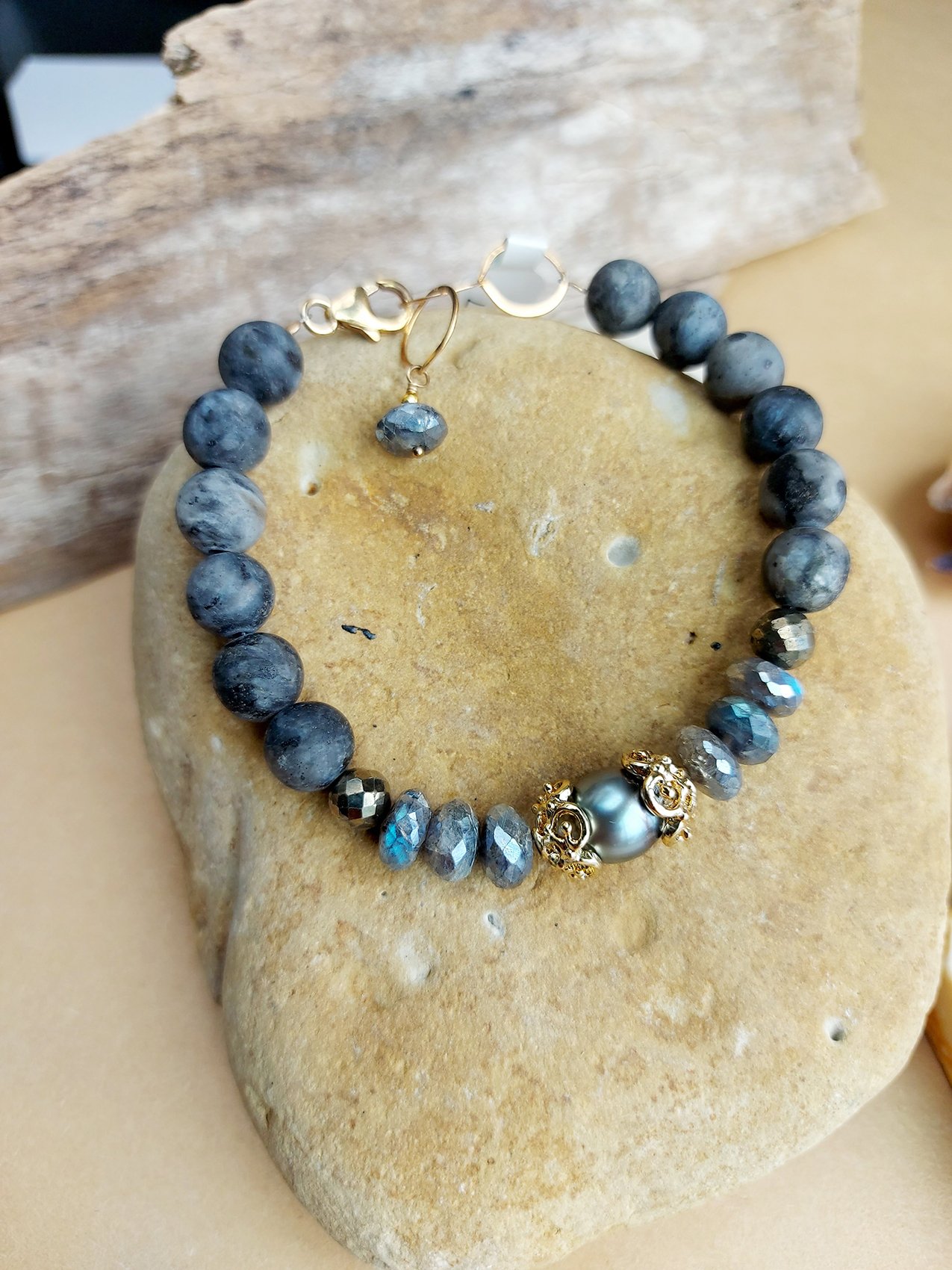 Tahitian Pearl, Black Labradorite bracelet – B 1307