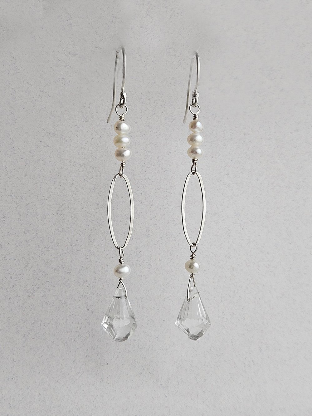 White topaz pearl earrings on sterling silver—these white topaz pearl earrings bring together the brilliance of faceted gemstones and the soft, organic glow of freshwater pearls in a refined and balanced design.